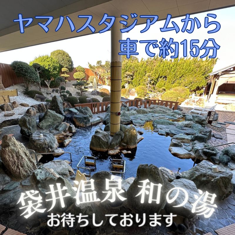 熱戦を見届けた後は、ヤマハスタジアムから車でわずか約15分の袋井温泉 和の湯で、じっくりと疲れを癒していきませんか?一生懸命応援してかいた汗や、長時間の観戦で疲れたお身体を、当館自慢の広々とした露天風呂でさっぱりと流してください。